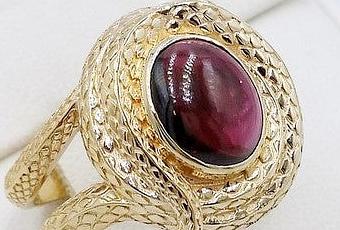 Le but de cet article est de vous présenter la confection d'une bague serpent pour homme en or 18 carats ornée d'une pierre de grenat rouge en cabochon.