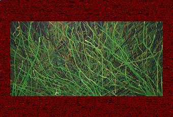 Vous allez vous poser la question dès l’entrée! Peinture ou numérique? Très vite, vous saurez que le travail qui est devant vous, en grands formats, est celui d’une artiste qui peint. Et qui peint bien! Mais, n’empêche, vous aviez un peu raison de vous interroger! Car Christine Vadrot s’intéresse à cette présence permanente et envahissante du numérique dans notre vie d’aujourd’hui. Cette nouvelle drogue. Elle glisse le doute en nous. Elle joue avec les ambiguïtés, les illusions. Et elle imagine une métamorphose de l’univers… Ses herbes, d’une peinture à l’autre, sont tantôt réalistes (mais déjà inquiétantes dans leurs étranges entrelacs) tantôt numérisées, comme fabriquées par une intelligence artificielle. L’artiste les nomme parfois « Herbes connectées ». Elles deviennent grillages rouillés, fouillis d’antennes, tiges métalliques et barres dressées. Le tout installé sur fond de nuages paisibles dans un calme ciel bleu… Troublant.