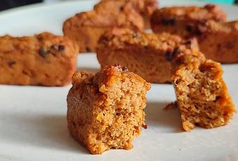 Comme les fois précédentes, j'ai mis la pâte dans des moules à mini-cake puis enfourné 15 mn à 180 °C. Laisser refroidir avant de démouler.