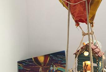 Les mondes que Maxime Cohen et Skopit invitent à visiter sont étranges, ce sont les nôtres : murs lézardés, pièces brisées tant bien que mal tenues dans un cadre, les yeux profonds d'un chat dans la nuit, et notre cerveau rangé en cartes. L'envie de partir est peut-être aussi la nôtre : en bateau-livres suspendu dans les airs par un ballon. Envie de partir et de jouer avec les traits, les couleurs et les mots.
