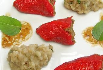 Il n'y a alors plus qu'à servir les piquillos farcis avec deux quenelles d'écrasée aux herbes et arroser d'un peu de jus d'agneau bien parfumé. Et à table!