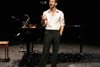 Sur scène, un piano particulièrement imposant. Mais Vincent, pantalon noir et veste noir sur chemise blanche, nous annonce d'emblée la couleur : il n'a jamais su en jouer, donc que personne ne s'attende à entendre de grandes envolées de cordes.