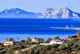 Le Rocher de Gibraltar et le Mont Abymes en face qui constituent les colonnes d'Hercule. Photo prise depuis ma résidence