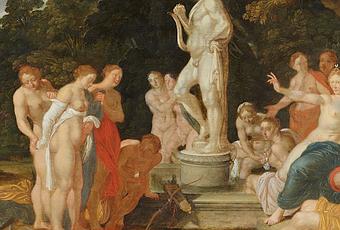 Diane et Callisto devant une statue d'Apollon.