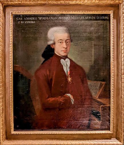 Ce portrait connu sous le nom de «Mozart de Bologne» est une copie exécutée en 1777 à Salzbourg par un peintre inconnu d'une toile originale perdue qui avait elle-même été peinte pour le père Martini à Bologne pour sa galerie de compositeurs. L'oeuvre est aujourd'hui exposée au Musée civique bibliographique et musical de Bologne. Leopold Mozart, le père de W. A. Mozart, écrivit au sujet de ce portrait : « il a peu de valeur comme oeuvre d'art mais en ce qui concerne la ressemblance, je peux vous assurer qu'il est parfait ». (texte original: „Malerisch hat es wenig wert, aber was die Ähnlichkeit anbetrifft, so versichere ich Ihnen, daß es ihm ganz und gar ähnlich sieht.“ Lettre de Leopold Mozart au Padre Martini de Bologne du 22 décembre 1777 (MBA II, pp. 204f, No. 396).