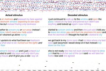 Le résultat ne recrée pas mot pour mot le stimulus. Au contraire, le décodeur capte l’essentiel de ce qui se dit. Ce n’est pas parfait, mais environ la moitié du temps, cela produisait un texte qui correspondait étroitement – parfois précisément – à l’original.