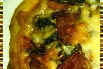 Smoked bacon, cremini mushrooms, asparagus and Asiago cheese all come together on a thin, crunchy flatbread crust to create a hearty and delicious main dish pizza.