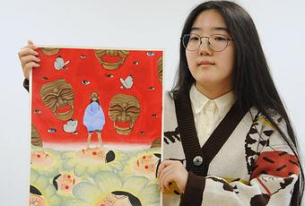Il y a beaucoup de métaphores et de messages cachés différents, explique-t-elle à propos de la pièce qui comprend le maquillage traditionnel que les femmes portent avec une tenue de soirée, ainsi que des masques coréens portés lors de représentations théâtrales.