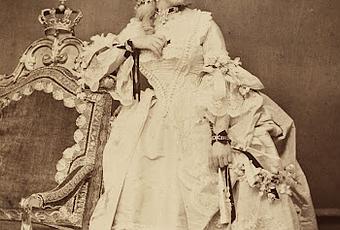 Portrait en costume de Clara Ziegler en Marquise de Pompadour dans le Narziss d'Albert Emil Brachvogel. Louis II assiste à une représentation publique de cette pièce le 7 février 1872. Sur le Narziss de Brachvogel, lire notre article Narcisse de Brachvogel, une des pièces préférées de Louis II. (Cliquer sur le lien)