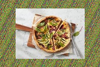 Je n'arrête pas de faire des tartes salées à la pâte feuilletée, à la pâte filo... De celle-ci j'avais oublié de faire une photo donc j'emprunte celle du site Allerhande. Mais j'ai sauvé les meubles en prenant une photo du quart de cette tarte salée qui restait.
