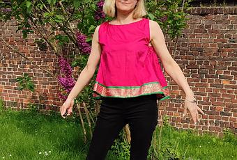 Le patronQuilla est un petit top très facile à coudre.Il est accessible à tous, mais ce que j'aime vraiment bien, c'est qu'il est très bien fini, avec une parementure bien pensée.En gros, c'est un petit top sans prise de tête.J'ai effectué une petite modification en raccourcissant l'élastique sous les bras. Je pense que je l'ai un peu trop raccourci. Il va falloir que je corrige cela.