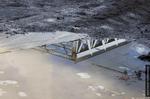 Sur l'île aux boeufs, le dispositif est désormais bien rodé et les chaises à galets sont prêtent à recevoir la face avant du pont, qui garde encore les stigmates des découpes de la veille.