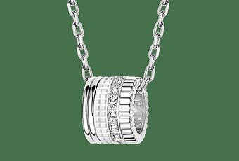 Théo Christine a également opté pour le pendentif Quatre Double White Edition modèle large, pavé de diamants sur or blanc, avec céramique blanche. Ce bijou, à la fois sophistiqué et contemporain, était parfait pour souligner le raffinement de sa tenue lors de cet événement prestigieux.