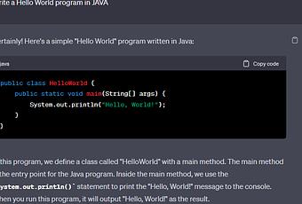 Félicitations pour avoir créé avec succès votre premier programme JAVA avec ChatGPT. Comme vous pouvez le constater, il vous donne non seulement le code, mais également une brève description du code pour une meilleure compréhension. C’est sûrement quelque chose dont tous les programmeurs ont rêvé. Donc, la principale chose à noter ici est que vous devez être très pointu et précis avec ce que vous voulez.