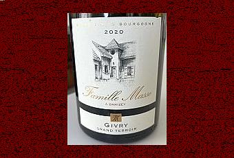 Givry, Domaine Masse Grands Terroirs 2020 (vidéo 0:30) : Un nez friand, expressif de framboise, de groseille, note fleurie puis épice réglisse, pointe fraiche, ronce, et fond léger moka. La bouche est corpulente, droite, tanins soyeux à grosse maille, de la fraicheur qui donne à la framboise, la groseille, un côté acidulé, note épice réglisse, pointe fraîche de ronce, fond noyau moka. La finale est presque puissante, acidulée, friande et persistance intéressante, framboise, groseille, épice et fond noyau moka. TB-Excellent 91+ (16,5+). Sylvia a adoré (d'ou le +), persuadée d'être sur un joli 1erC...