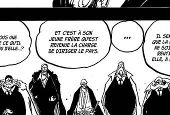 La partie la plus intéressante du chapitre pourrait se situer vers la fin, lorsque Sabo se faufilera dans la salle du trône où se trouvent Cobra et Imu. Les fans savent pertinemment que Sabo parvient à entrer dans cette salle, comme le montre la photo publiée dans les journaux. On ne sait pas encore comment Sabo parvient à tomber sur cette pièce, mais il essaiera probablement de sauver le roi Cobra et échouera dans sa tentative. Néanmoins, Sabo verra certainement le visage d’Imu, à tout le moins. Il est également intéressant de voir comment il parviendra à échapper à des personnes extrêmement puissantes. S’il tombe sur la pièce où se trouve Imu, il sera entouré des Cinq Sages et d’Imu.
