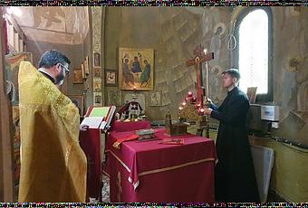 Liturgie à la « chapelle russe » du cimetière militaire russe de Saint-Hilaire/Mourmelon.
