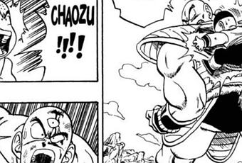 Les circonstances de la mort de Yamcha ne sont pas vraiment pathétiques si l’on se réfère aux événements du chapitre 23. Après la mort de Yamcha, Nappa passe à l’offensive et s’attaque à Tenshinhan, lui arrachant le bras sans effort avant de le mettre à terre. Mais l’assaut de Nappa est interrompu lorsque Chaozu s’accroche à son dos de la même manière que le Saibaman l’avait fait pour Yamcha quelques chapitres plus tôt, puis s’autodétruit de la même manière.