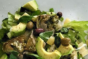 Mettre tous les ingrédients dans un saladier et mélanger délicatement avec l'huile d'olive, saler et poivrer