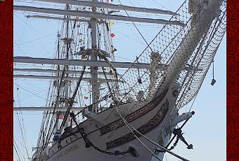 Abandonnant ma monture, j'admirai la complexité des gréements, les majestueuses voilures, l'élégance des mâts, l'anachronisme des grues au milieu des misaines, des huniers et des artimons