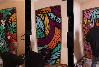 À l’origine du projet, Ash Kha, voulait rendre hommage au lieu où il a grandi, et vivait encore, quand il a appris que l’immeuble allait être rasé. Après chaque départ de locataire la porte en était mûrée, et après son propre départ en 2021 a germée l’idée d’avoir un symbole pour se souvenir de ce lieu. Etant d’une famille à la fibre artistique, il était logique que le projet le soit.