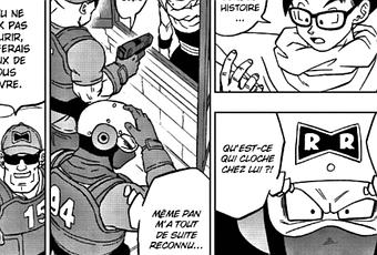 Dans l’épisode #94 de Dragon Ball Super, signé Akira Toriyama et illustré par Toyotaro, Piccolo met en place un plan super risqué pour que Gohan retrouve son instinct de guerrier et réveille sa puissance, histoire de mettre une raclée aux nouveaux androïdes Gamma fabriqués par l’Armée du Ruban Rouge qui s’est reformée. Piccolo se fait passer pour un soldat du Ruban Rouge et kidnappe Pan (qui est dans le coup et joue le jeu) pour attirer Gohan vers la base secrète de l’organisation. Quand un autre soldat montre à Gohan une photo de Pan prisonnière, il se transforme direct en Super Saiyan pour la première fois dans Dragon Ball Super. Même après avoir atteint la base et avoir été attaqué par l’androïde Gamma 1, Gohan utilise sa forme de Super Saiyan pour se battre.