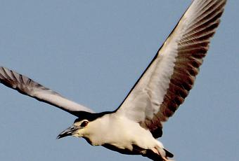 Bihoreau volant au dessus de l'étang communal d'Ouzouer-sur-Loire (45 - Loiret)