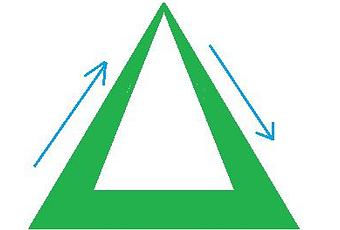Il existe une force disposée symboliquement en triangle, force venant donc d'un centre intérieur (le sommet de ce triangle ci-contre), filant vers l'extérieur, passant par la périphérie et revenant vers l'intérieur.