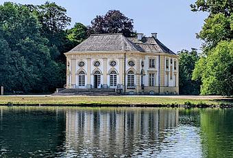 © Luc-Henri RogerC'est sous le Prince électeur Maximilien Emmanuel que fut construit le pavillon de Badenburg (Le château des Bains). Il fut érigé entre 1718 à 1722 selon les plans de Joseph Effner au sud du parc de Nymphenburg au bord d'un lac artificiel. Le plan de l'étage principal est constitué d'une salle rectangulaire aux angles arrondis. Au sud, une aile également rectangulaire abrite la salle de bain et l'appartement du prince électeur (antichambre, chambre à coucher, cabinet, garde-robe).