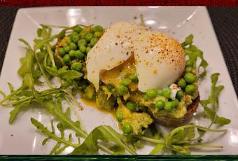 Disposez par-dessus les petits pois en laissant un espace au milieu pour l'œuf (en formant un petit puits)