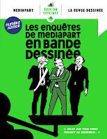 Huit enquêtes de Médiapart présentées en bande dessinée. Pour chacune, des dessinateurs, graphistes, scénaristes différents donc pas le même style de planches, de couleurs, voire même d’approche de la problématique. Les bulles sont assez importantes car il est nécessaire de donner suffisamment d’informations pour que le lecteur ait tous les éléments de compréhension en mains.