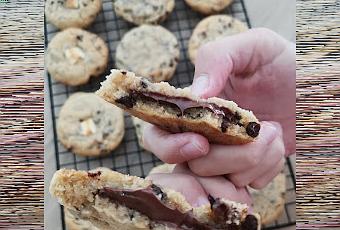A la maison on a une petite passion pour les cookies. J'en fait régulièrement, j'ai deux ou trois recettes chouchous que je fais régulièrement. Pour pousser la gourmandise un peu plus loin j'ai fourré ma dernière tournée avec de la pâte à tartiner. C'est délicieux mais anti summer body ;-) J'ai utilisé la même recette qu'ici.