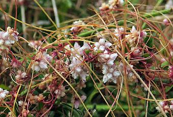 Cuscuta epithymum (Cuscute du thym, petite cuscute) Parasite préférentiellement des ligneuses : Genista, Calluna, Erica, Ulex, Cytisus…Habitat de l'espèce parasitée Cuscute du thym (Cuscuta epithymum)Cuscute du thym (Cuscuta epithymum)