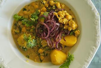 J'avais noté cette recette sur ma to do list, mais j'étais loin de penser qu'elle allait tant me plaire. Si vous aimez les currys, les pois chiche et les oignons ce plat est pour vous.