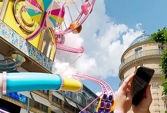 La façade du bâtiment est animée et transformée en un gigantesque parc d'attractions grâce à la technologie de réalité augmentée City Landmarker de Snapchat, utilisée pour la première fois en France. L'expérience, basée sur l'œuvre de l'artiste Clément Morin, présente des éléments de fête foraine tels que des montagnes russes, une grande roue et des manèges, qui apparaissent plus réalistes que jamais.