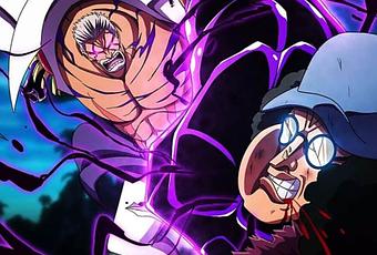 Garp se lève et fait face à Kuzan. Il frappe Kuzan au sol, se déplaçant si vite que Kuzan est surpris. Puis Garp saute sur les toits en direction du crâne et l’attaque.
