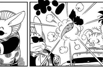 Dans Dragon Ball Chapitre 17, Goku affronte un méchant connu sous le nom de To Ninjinka, un lapin de taille humaine et chef de gang avec le pouvoir de transformer quiconque il touche en carotte. Bien qu’il soit un adversaire redoutable, Goku a réussi à vaincre To Ninjinka en le clouant à l’extrémité de son bâton magique et en étendant l’arme jusqu’à la Lune, où To Ninjinka vivrait le reste de ses jours en exil. Comme Lord Beerus a prouvé que son attaque préférée lorsqu’il combat quelqu’un qu’il considère comme inférieur est de lui donner une pichenette sur la tête, alors il est logique qu’il le fasse s’il combattait jamais To Ninjinka, et serait donc transformé en carotte. Cependant, les lecteurs ne sauront jamais si To Ninjinka aurait pu réellement battre Beerus, car To Ninjinka est probablement mort lorsque Goku a forcé la main de Tortue géniale pour détruire la Lune.