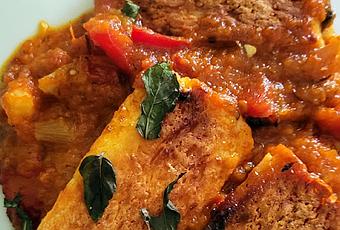 Pour finir un halloumi qui me restait au frigo je me suis inspirée d'une recette du blog , mais j'ai remplacé la boîte de tomates par le coulis de tomate fait maison d'après Les filles à table la recette de Jean-François Piège . Le halloumi est un fromage originaire de Chypre qui ne fond pas à la cuisson.