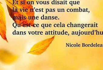 Et si on vous disait que la vie n’est pas un combat mais une danse. Qu’est-ce que cela changerait dans votre attitude aujourd’hui ? – Nicole Bordeleau