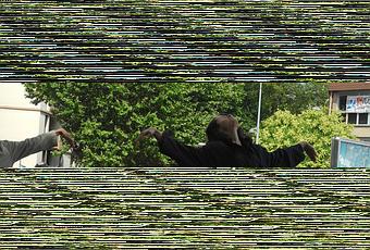 Derrière les danseuses, de l’autre côté de la rue, je vois une banderole et sa colère qui ne veut pas se taire. Parfois la colère de la rue voudrait « fuir ! là-bas fuir ! Je sens que des oiseaux sont ivres / D’être parmi l'écume inconnue et les cieux » (Mallarmé). Mais une main retient, mais un regard appelle, une douleur doit être dite à quelqu’un. Une révolte. Une solidarité.
