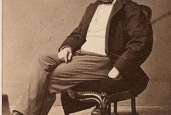 Ganzfigur Richard Wagner (1813-1883; Komponist), sitzend. Fotografie (carte de visite mit Atelieraufdruck verso) von Louis Buchheister, Paris, wohl im Sommer 1861 auf Wunsch von Mathilde Wesendonck. Albuminpapier auf Karton; 10,4 x 6,4 cm. Dresden: SLUB Mscr.Dresd.App.2725,2.