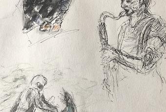 Je regardais tour à tour un vieil album de croquis et ma main droite gonflée, enflée malgré le manchon de contention et les drainages lymphatiques. Depuis combien de temps n’avais-je plus fait un croquis -manque d’envie, moi qui vivais un crayon à la main, ou peur de ne plus savoir le tenir ce damné crayon ? Et si j’essayais, pour voir ? Je serais seule à voir, à déchirer rageusement la page ou à trouver que, au fond, le résultat était meilleur que je ne l’espérais. Et voilà ! Bien sûr, il y a du bon, du moins bon et du franchement mauvais. Mais depuis je me suis astreinte à travailler un peu chaque jour. Le plus dur va être de continuer régulièrement sans faiblir. Pour ça, je vais m’appuyer sur vous. Je compte que vous allez me soutenir et surtout me secouer si je me laisse aller. Je vais partager avec vous ma production quotidienne, brute, sans retouche et vous allez m’aider à persévérer…D’accord ?