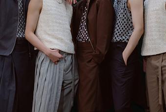 SOOBIN WORE A DIOR MEN'S COLLECTION CUSTOM MADE GREY SILK POLKA DOT SLEEVELESS GILET, GREY WOOL CHINO PANTS WITH MATCHING SHORT KILT AND WHITE LEATHER DIOR OBLIQUE B33 SNEAKERS.YEONJUN WORE A DIOR MEN'S COLLECTION CUSTOM MADE BEIGE WOOL TWEED SLEEVELESS GILET, BEIGE WOOL CHINO PANTS WITH MATCHING LONG KILT AND WHITE LEATHER DIOR OBLIQUE B33 SNEAKERS.