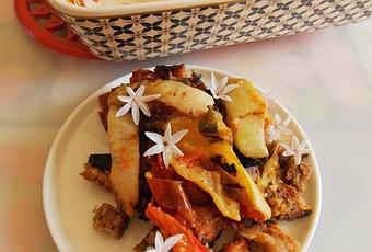 Aujourd'hui, je vous propose du Pain rassis aux tomates et courgettes confites (Vegan) :