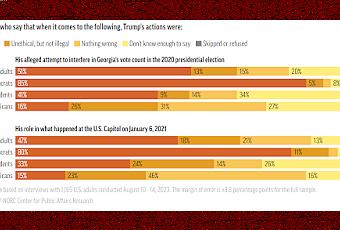 Malgré les mensonges, les actions illicites et probablement les crimes répétés de Trump, seulement un peu plus de la moitié pensent que sa tentative de fraude, pour changer le décompte des voix de Géorgie en 2020, était illégale. Cela indique clairement que les autres n'ont aucun problème avec cela et que leur boussole morale est carrément fichue, s'ils n’en ont jamais eu une en état de marche.