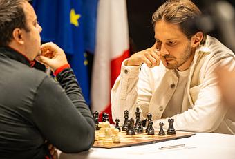 Avec les Noirs, Laurent Fressinet (2652) a annulé face à Joseph Girel (2462) sur une Partie Espagnole. Contre toute attente, Laurent perdra ensuite avec les Blancs et sera éliminé au premier tour - Photo © FFE