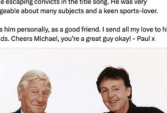 Paul McCartney, le chanteur des Beatles, s’est rendu sur les réseaux sociaux pour rendre un hommage émouvant au légendaire animateur Michael Parkinson.