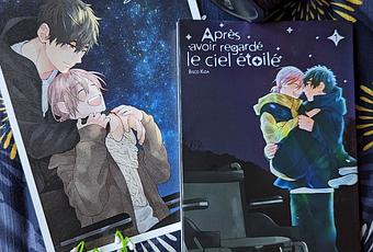 Après avoir regardé le ciel étoilé est un titre de Bisco Kida paru dans le magazine Comic Fleur. Avant ce manga, il y a eu Hitoban dake iikotosiyou (2018), 100kazoetara furimuite (2019) puis Rui wa koi wo yobu (2020) ou encore Perfect bedroom (2022). Prévu comme un one shot, Après avoir regardé le ciel étoilé a droit à une suite. Le tome 3 de ce boys love est en cours de parution. Une belle consécration pour un titre tout en douceur. C’est chez Delcourt-Tonkam dans sa collection Moon light qu’il est édité. Ce titre est agréable surprise de retrouver du BL dans une autre maison d’édition.