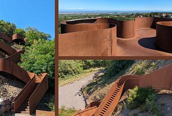 Un édifice surprenant qui serpente sur le parvis de l’ancienne carrière d’Ottrott-Saint-Nabor. Une fois les nombreuses marches montées, une magnifique vue s’offre à vous.