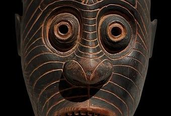 Photo 1 : Inuit Shamans mask, Ammassalik. 24 cm x 17,5 cm. Ammassalik, East Greenland ca. 1920-30 - Provenance: Colonial Administrator Ammassalik Einar Friis-Nielsen. © David Utzon-Frank